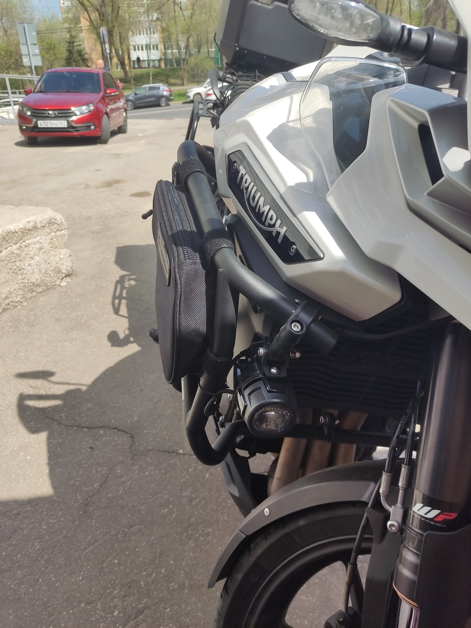 Комплект туристических сумок в дуги для мотоцикла Triumph Tiger 1200, для перевозки малогабаритного багажа, инструментов, смазочных материалов. Молния с водооталкивающим покрытием, позволяет продолжительное время удерживать воздействие окружающей среды и не даст промокнуть вещам размещенным в сумке. Монтаж производится на внутреннюю область дуги с помощью пластиковых хомутов(стяжек). Вы можете ознакомиться с видео монтажа в нашей группе или на сайте.